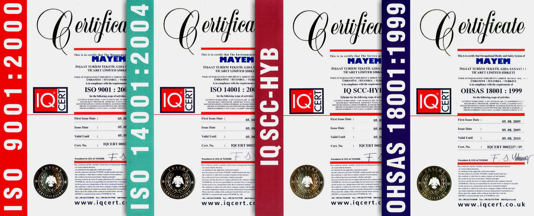 Kalite, üretim yeterlilik, iş güvenliği ve çevreye verdiğimiz önemi tescilleyen
